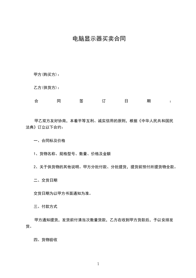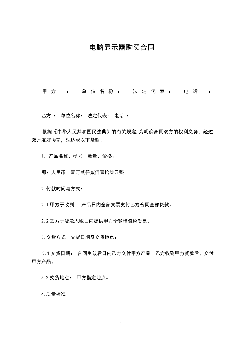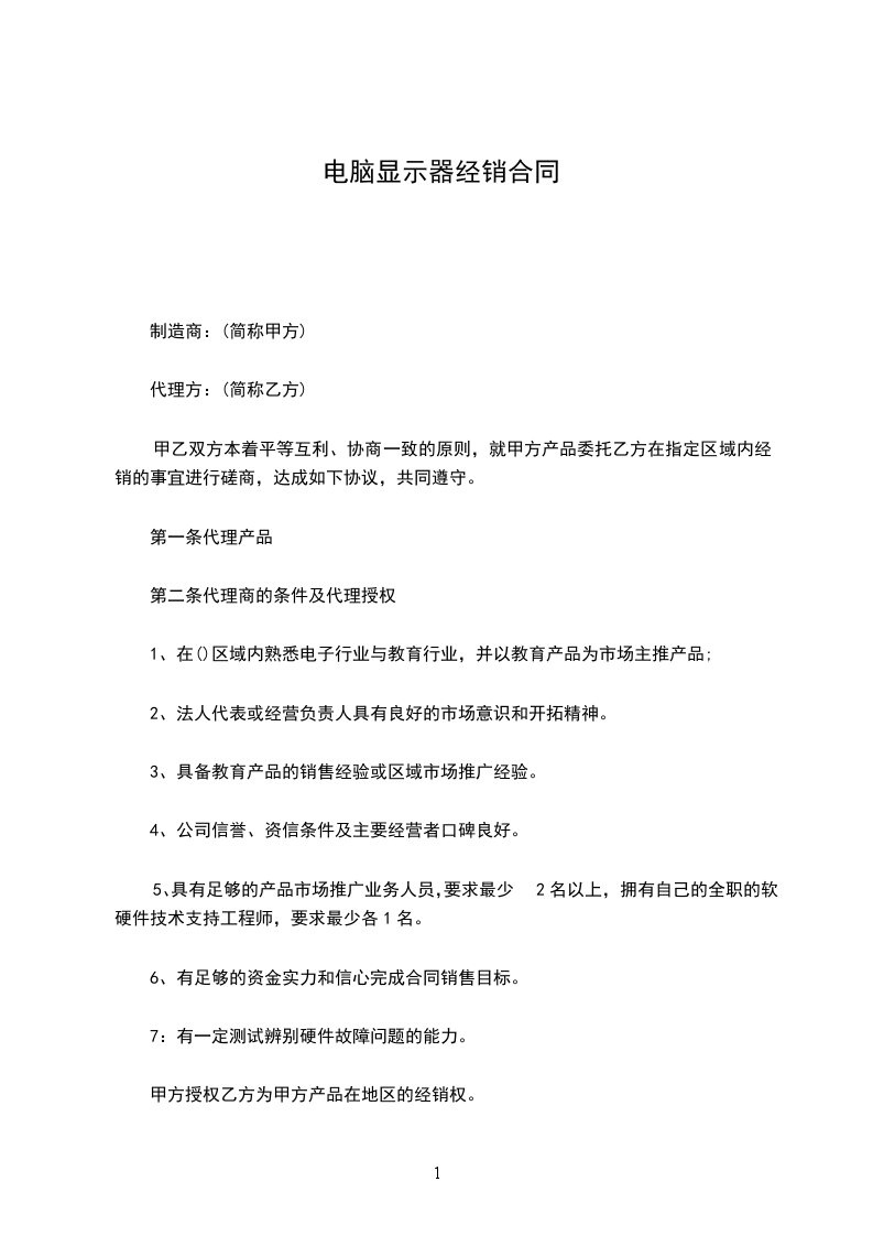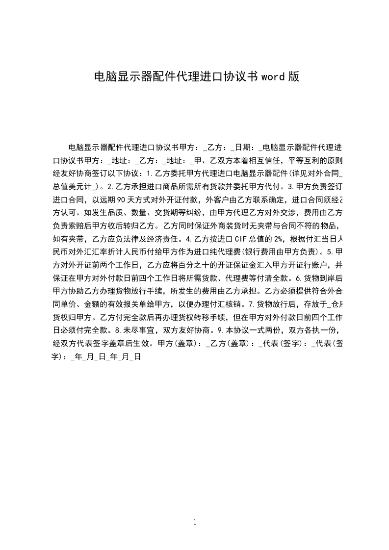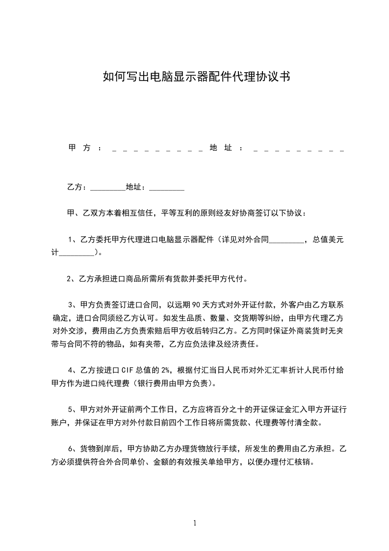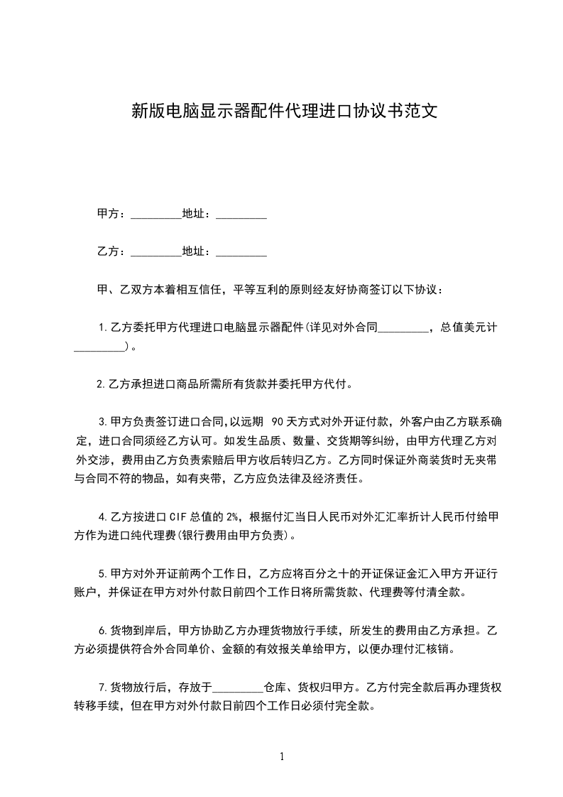 1.乙方委托甲方代理进口电脑显示器配件(详见对外合同_________,总值美元计_________)。