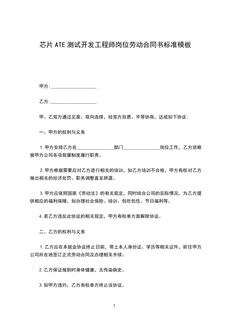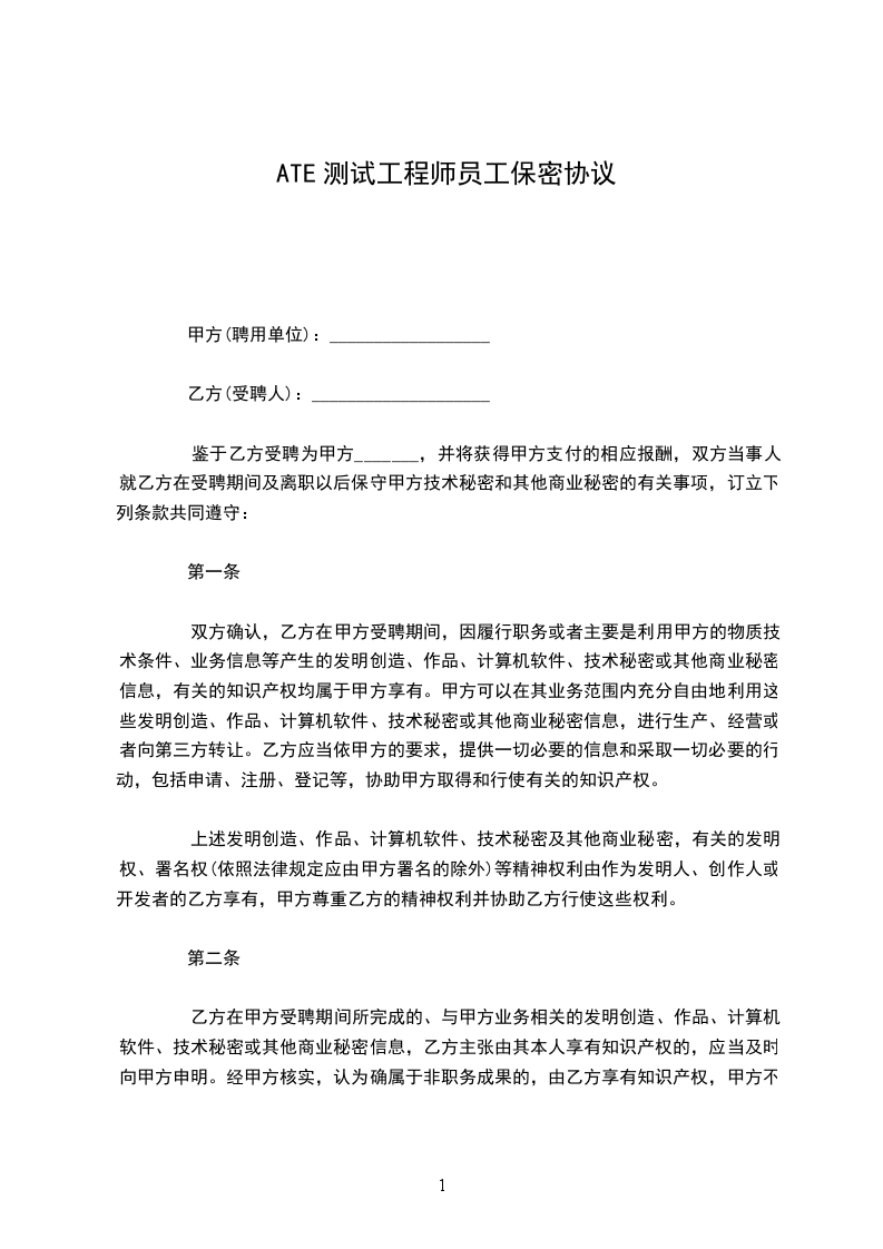 芯片ATE测试开发工程师员工保密合同