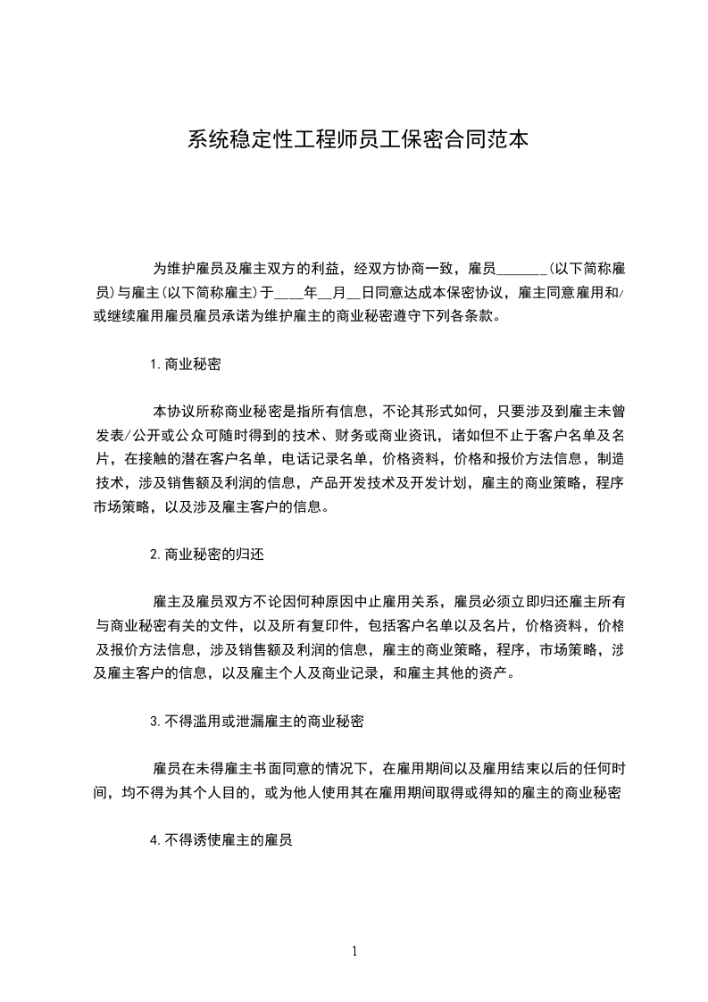 为维护雇员及雇主双方的利益,经双方协商一致,雇员_______(以下简称雇员)与雇主(以下简称雇主)于____年__月__日同意达成本保密协议,雇主同意雇用和/或继续雇用雇员雇员承诺为维护雇主的商业秘密遵守下列各条款。
