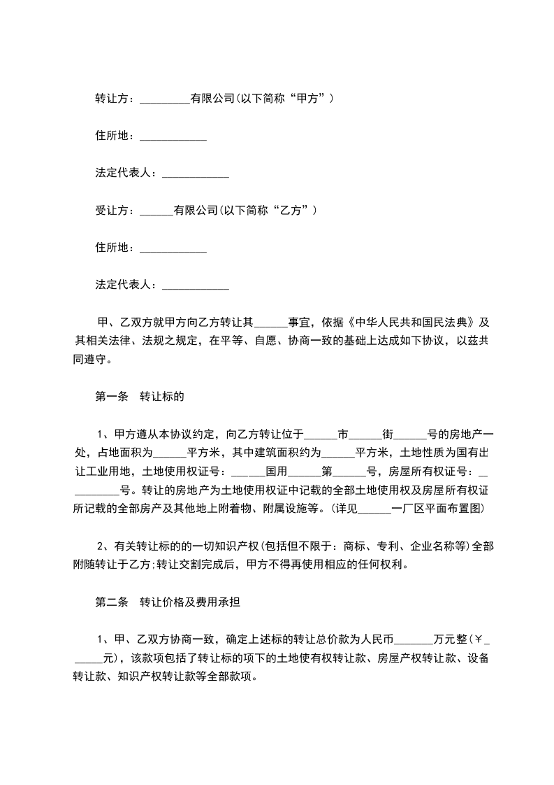 第三条 甲乙双方对上述转让数量、面积核对无误,同意上述房地产转让价格为__________元,单价__________元/,总金额__________元;并于______年____月____日前全部交完。