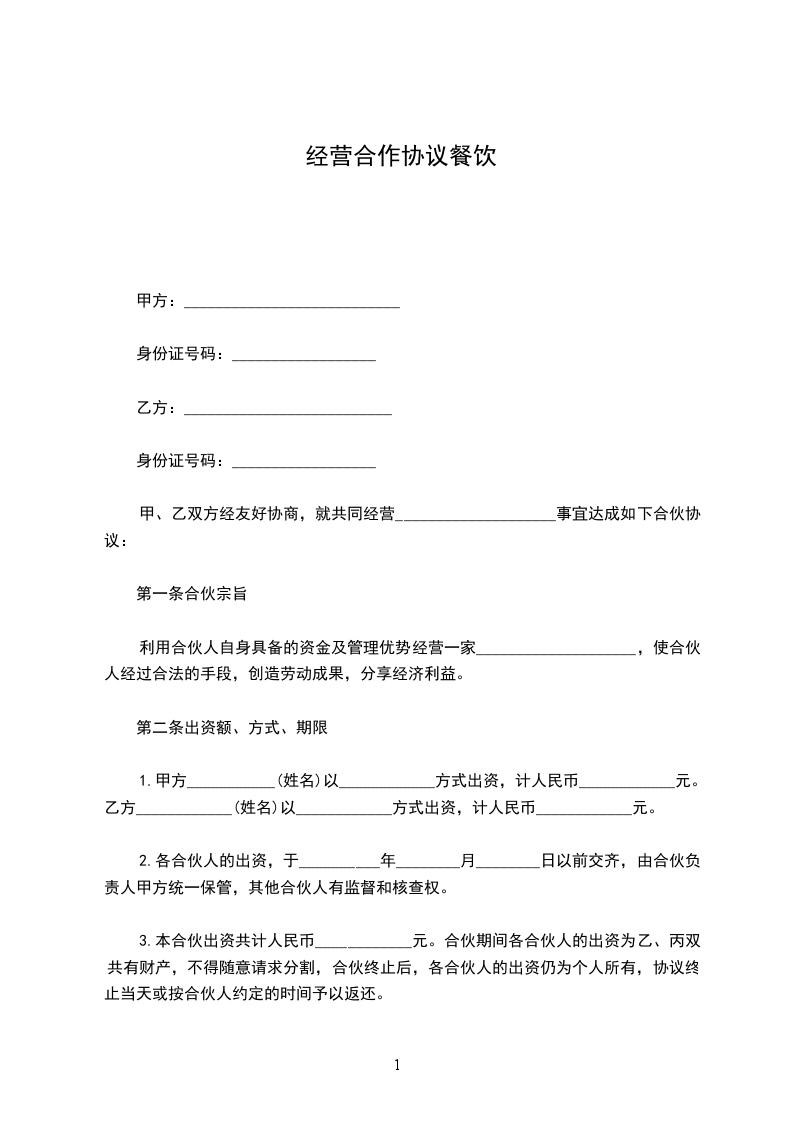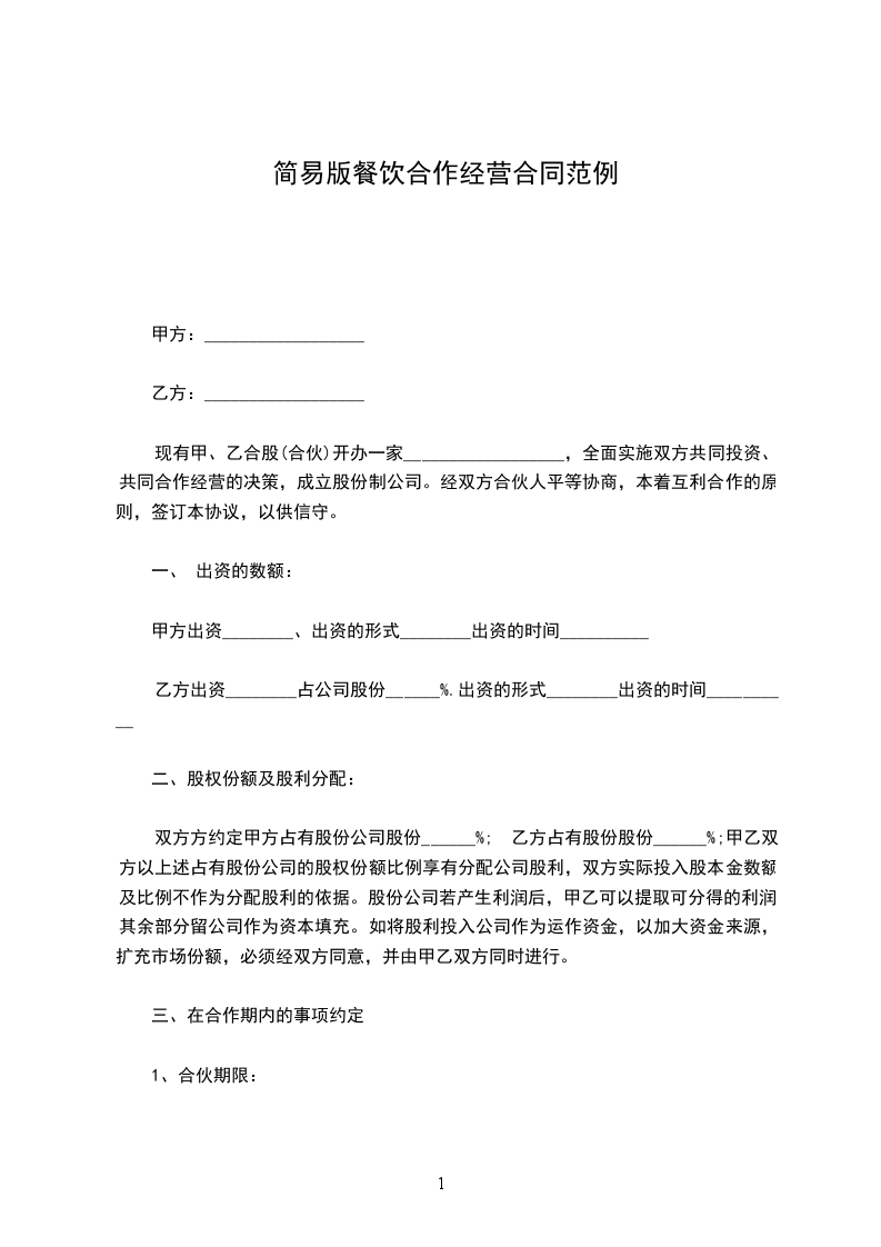 现有甲、乙合股(合伙)开办一家__________________,全面实施双方共同投资、共同合作经营的决策,成立股份制公司。经双方合伙人平等协商,本着互利合作的原则,签订本协议,以供信守。