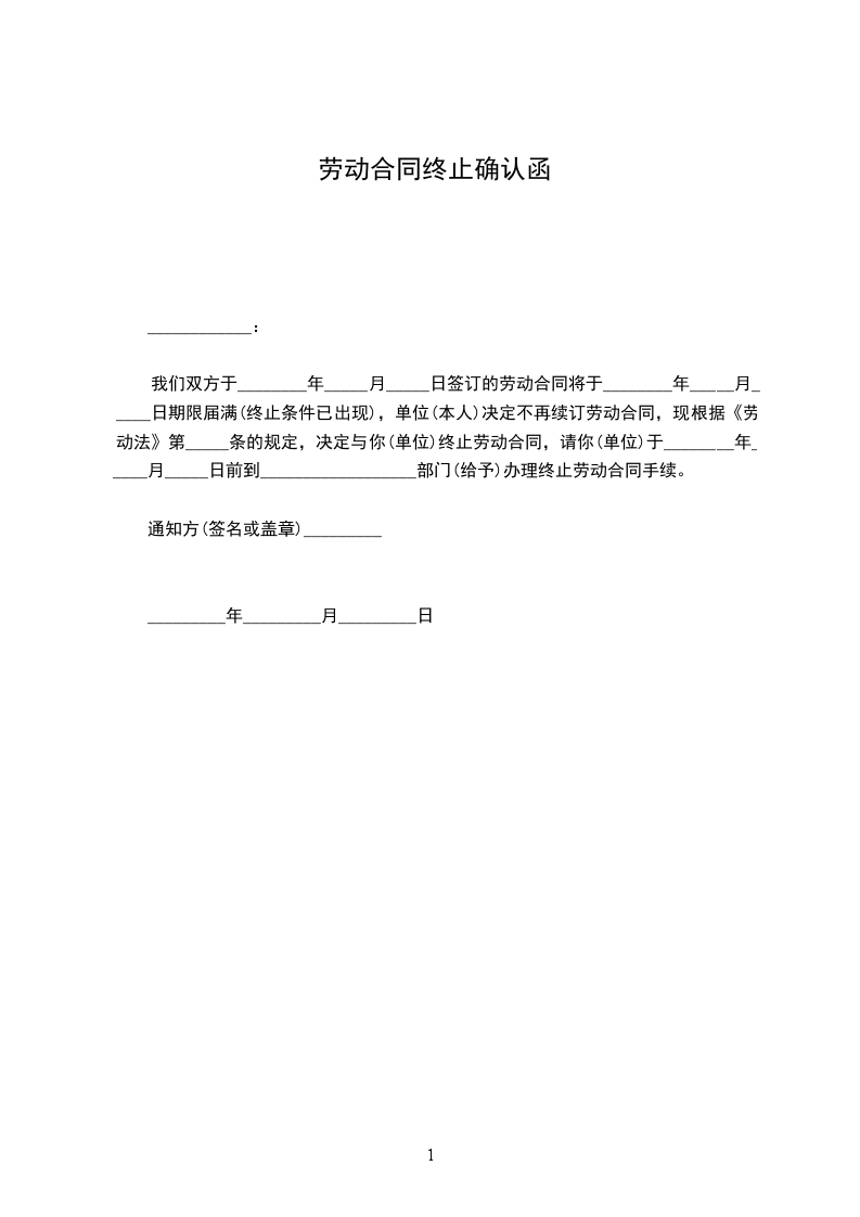 1、甲乙双方于________年________月________日签订了合同期限从________年________月________日至________年________月________日的劳动合同,解除劳动合同日期为________年________月________日,双方的劳动关系随之终止。