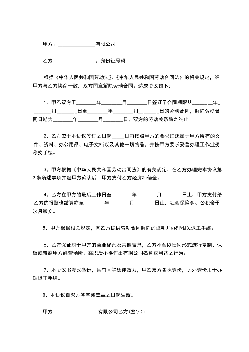 根据《中华人民共和国劳动法》、《中华人民共和国劳动合同法》的相关规定,经甲方与乙方协商一致,双方同意解除劳动合同。达成协议如下: