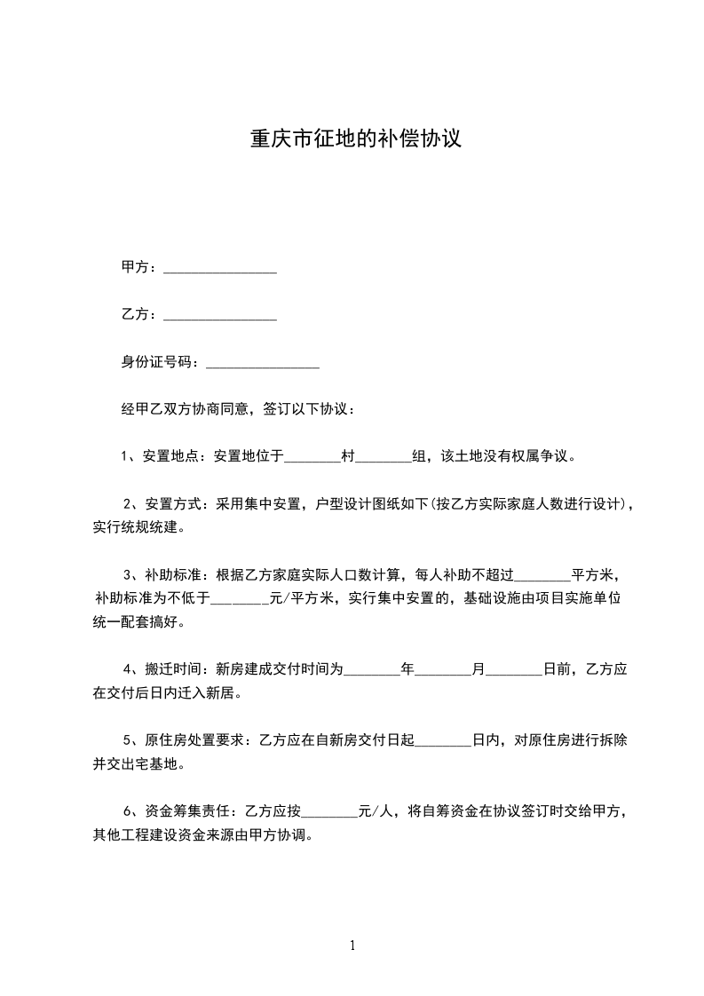 7、甲乙双方其他义务:乙方要求集中安置的,由甲方统一安排用地,要求分散安置的,自行与村组协商用地,村组应提供帮助,乙方自协议签订日起,不得反悔,不得违背协议拒不拆除旧房,不得占用原宅基地,甲方对安置工程建设进度,房屋质量监管负有业主责任,如因工程质量,建设进度产生纠纷,甲乙双方协商解决。