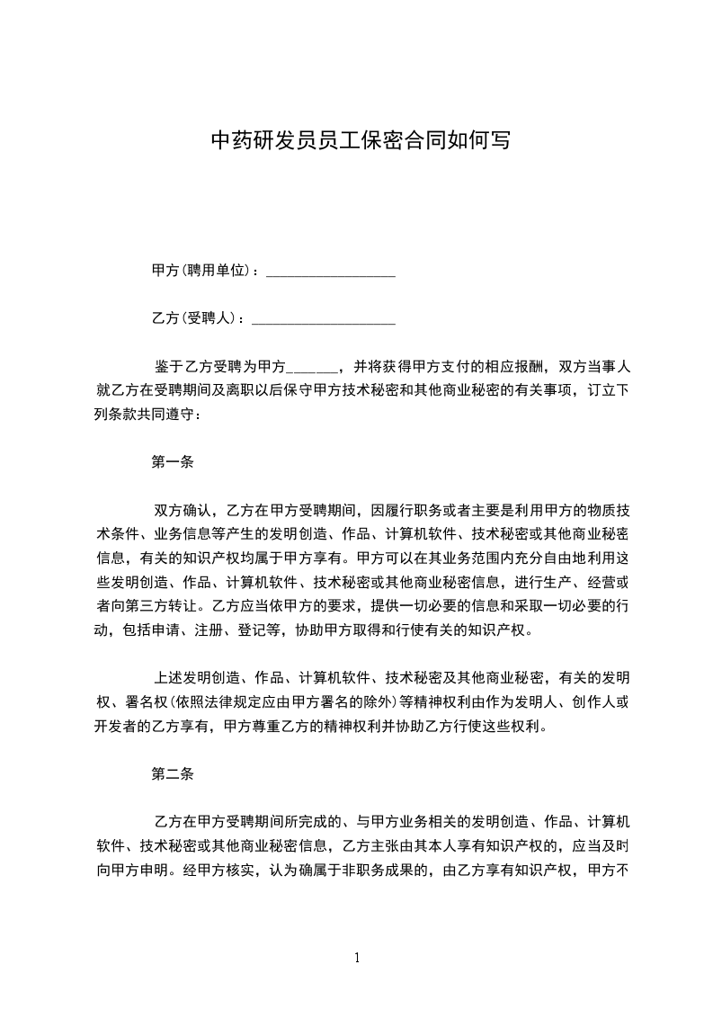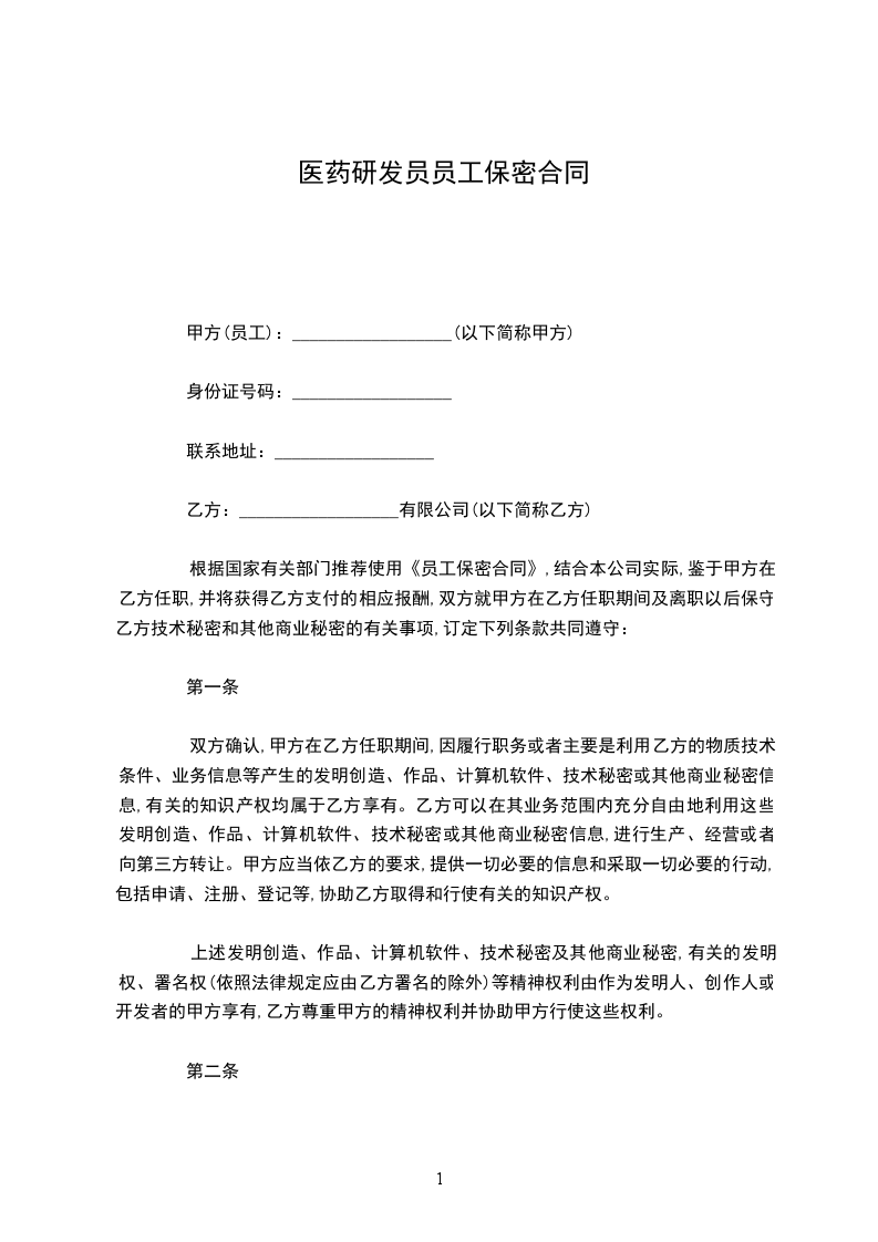 根据国家有关部门推荐使用《员工保密合同》,结合本公司实际,鉴于甲方在乙方任职,并将获得乙方支付的相应报酬,双方就甲方在乙方任职期间及离职以后保守乙方技术秘密和其他商业秘密的有关事项,订定下列条款共同遵守:
