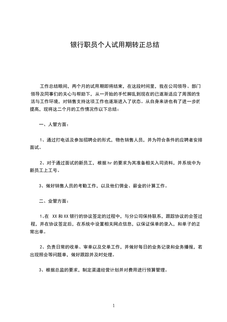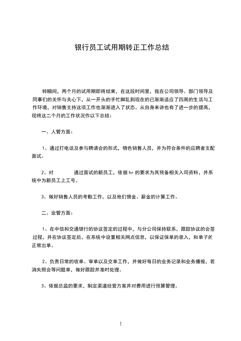 经历近两个月的试用期,现在即将面临转正。在这两月里我很荣幸能和大家一起经历__开业前期的培训和准备,有幸见证公司开业当天庄严激动的那一刻,和搬入新办公区,我们一起用心布置和爱护家一般的喜悦心情,还有每一次跑客户谈业务的经历仍很清晰,我很认真的扮演着自己的角色,努力提高,和同事相互协作和学习,互相鼓励,一次次使我变得更有底气。