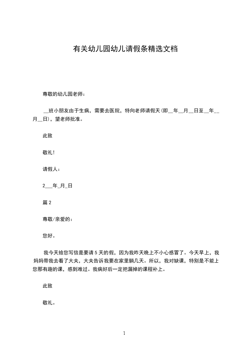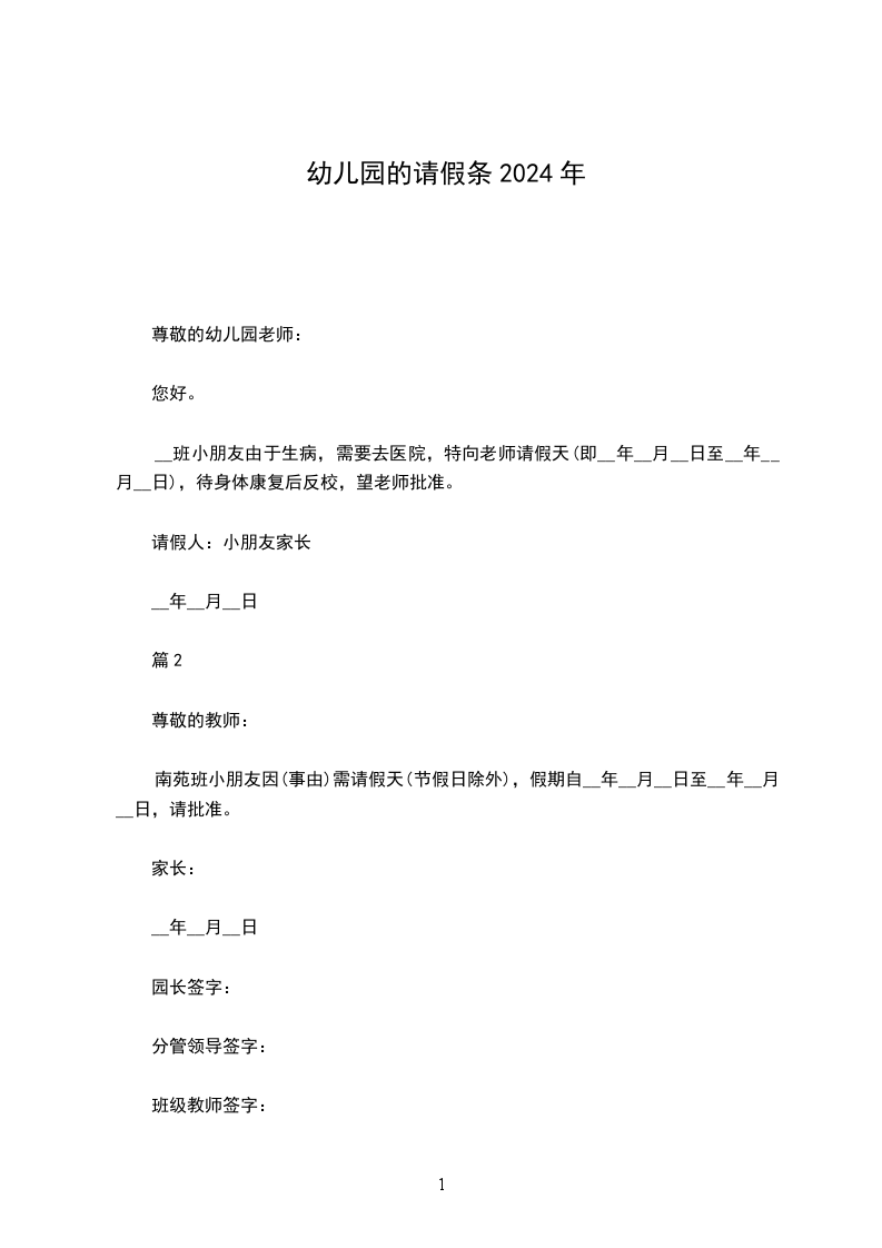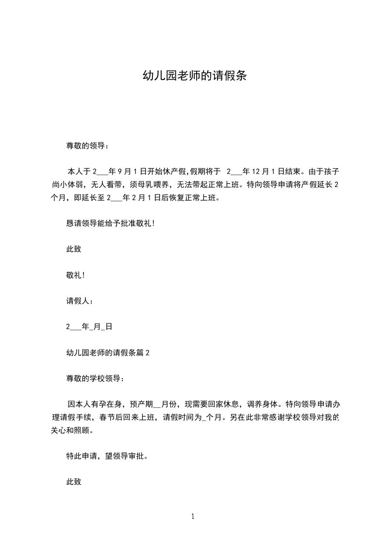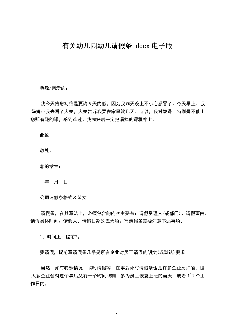 幼儿园事假请假条2