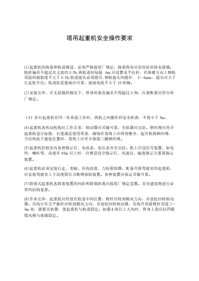 ②④凡有电梯的塔式起重机,必须遵守电梯的使用说明书中的规定,严禁超载和违反操作程序。