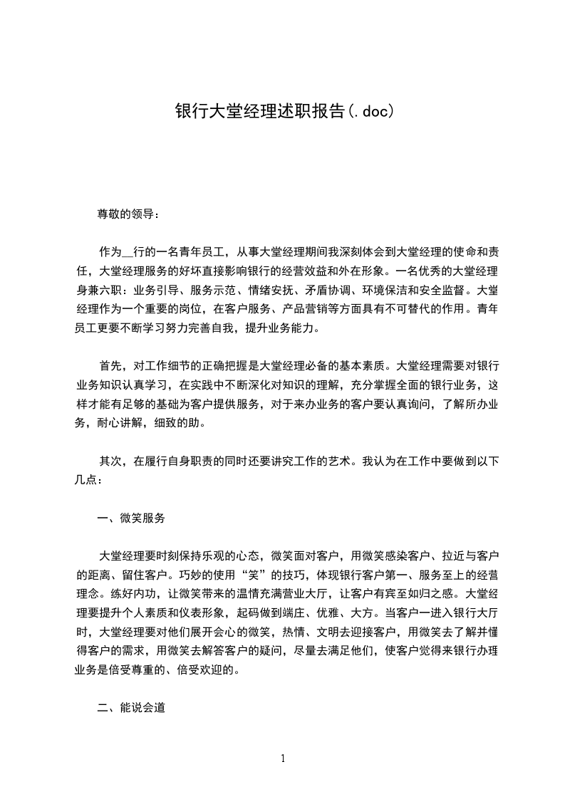 银行大堂辞职报告