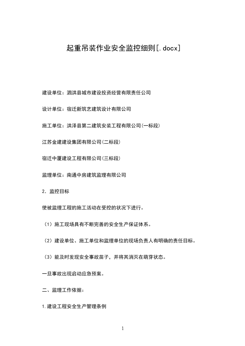 1.4、起重吊装工程专项施工方案应由施工单位报监理单位由总监理工程师审批认可;