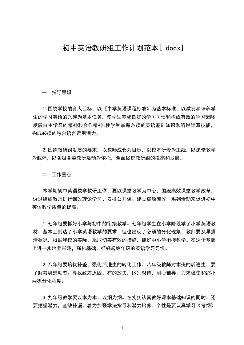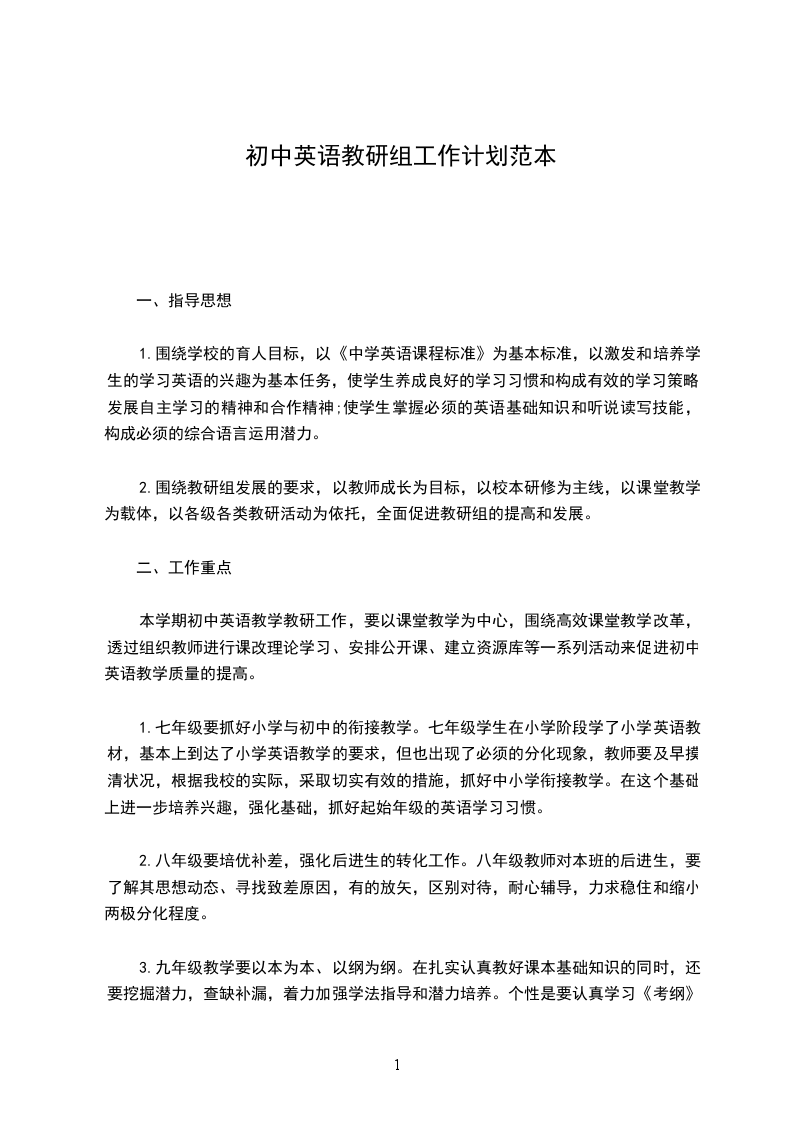 1.制定本学期初中英语教研组工作计划