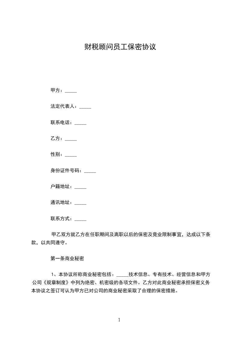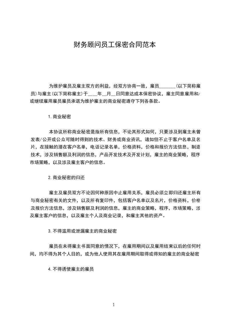 财务顾问员工保密合同范本
