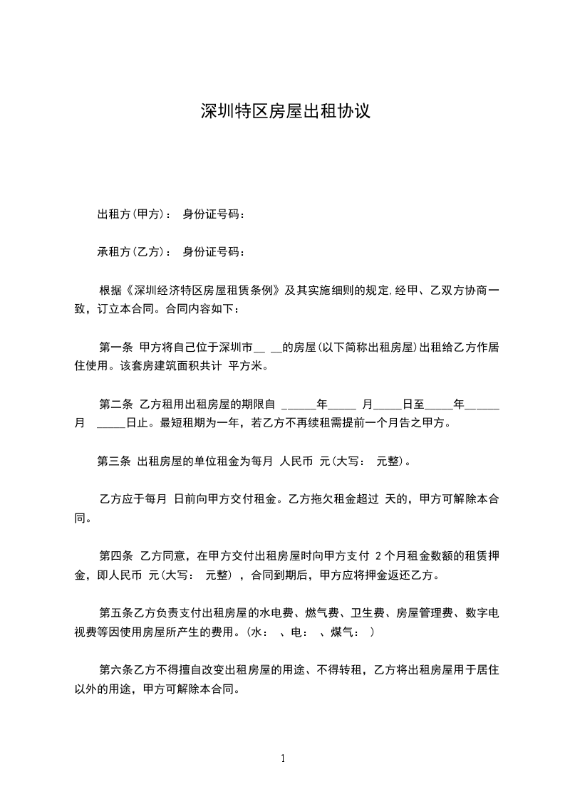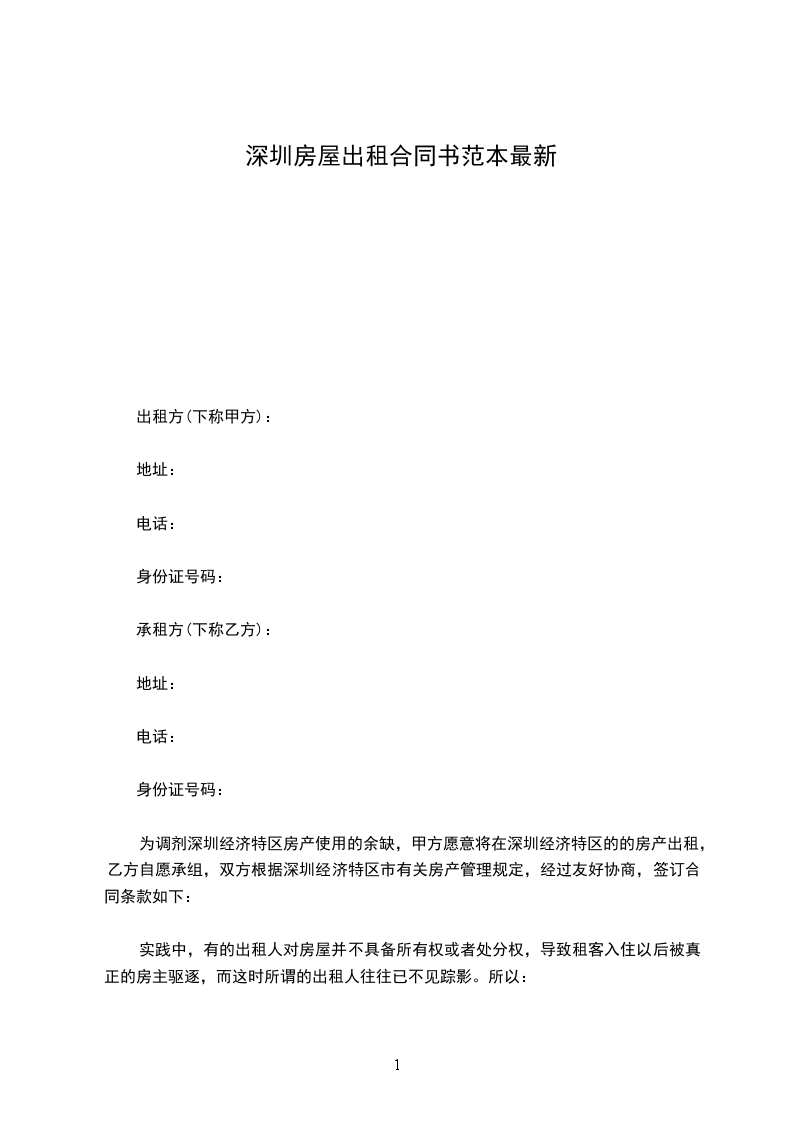 为调剂深圳经济特区房产使用的余缺,甲方愿意将在深圳经济特区的的房产出租,乙方自愿承组,双方根据深圳经济特区市有关房产管理规定,经过友好协商,签订合同条款如下: