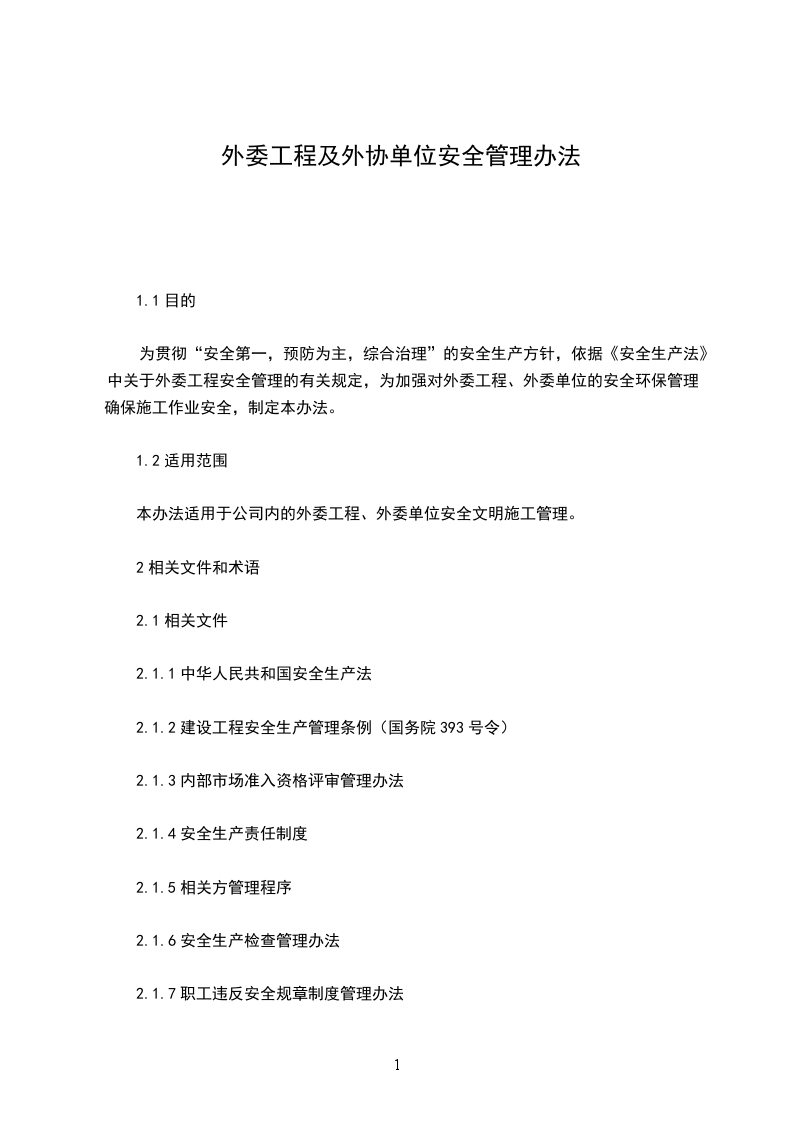 本办法适用于公司内的外委工程、外委单位安全文明施工管理。