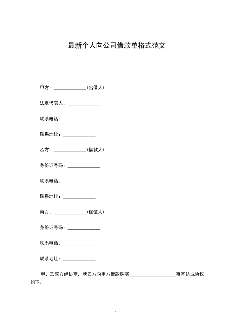 甲、乙双方经协商,就乙方向甲方借款购买____________________事宜达成协议如下: