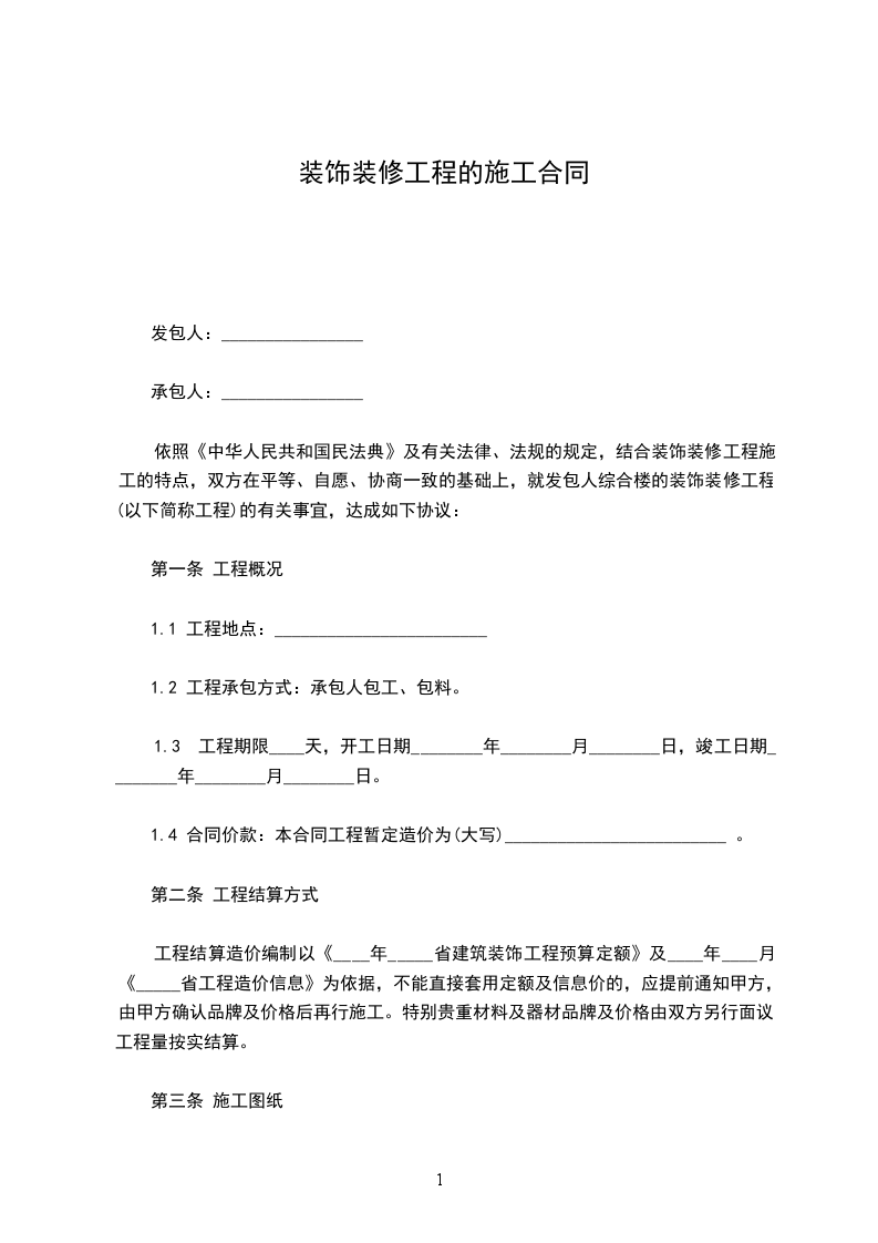 依照《中华人民共和国民法典》及有关法律、法规的规定,结合装饰装修工程施工的特点,双方在平等、自愿、协商一致的基础上,就发包人综合楼的装饰装修工程(以下简称工程)的有关事宜,达成如下协议: