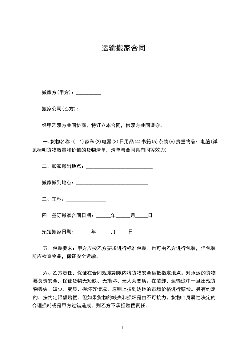 六、乙方职责:保证在合同规定期限内将货物安全运抵指定地点。对承运的货物要负责安全,保证货物无短缺、无损坏、无人为变质。在装卸、运输途中一旦出现货物丢失、短少、变质、损坏等状况,原则上按到达地的市场价格进行赔偿。另有约定的,按约定限额赔偿。但如果货物的缺失和损坏是由不可抗力、货物自身属性决定的合理损耗或是甲方过错造成,则乙方不承担赔偿职责。