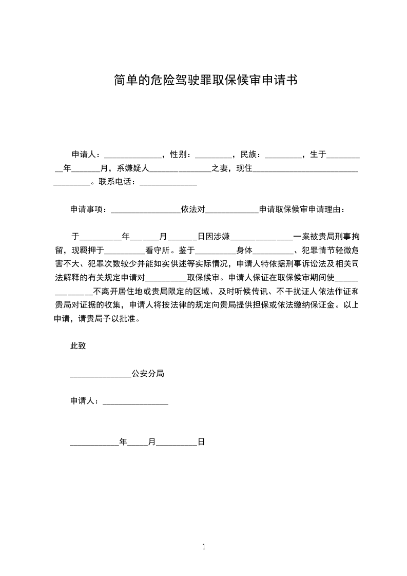 申请人:______________,性别:_________,民族:_________,生于__________年_______月,系嫌疑人_______________之妻,现住___________________________________。联系电话:______________