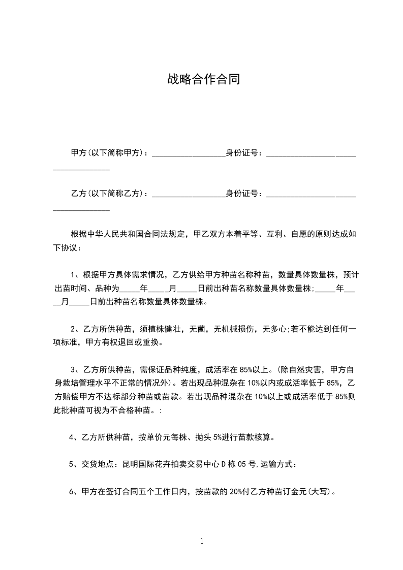 1、根据甲方具体需求情况,乙方供给甲方种苗名称种苗,数量具体数量株,预计出苗时间、品种为_____年_____月_____日前出种苗名称数量具体数量株;_____年_____月_____日前出种苗名称数量具体数量株。