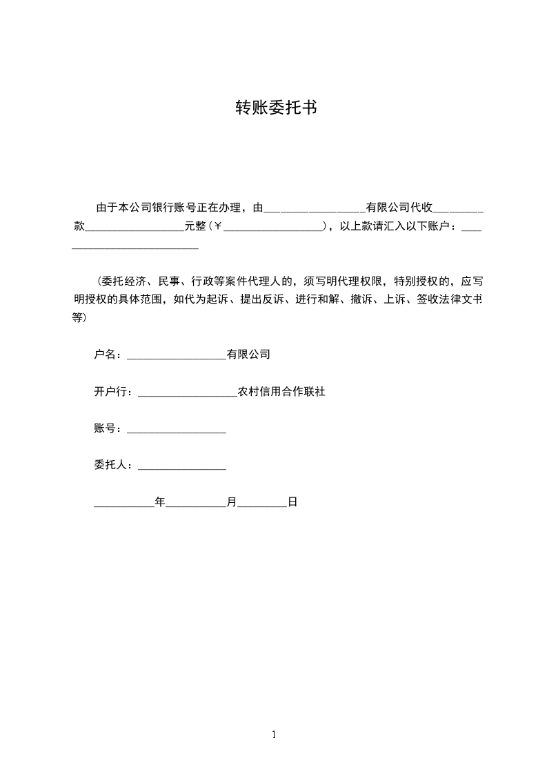 由于本公司银行账号正在办理,由__________________有限公司代收_________款__________________元整(¥__________________),以上款请汇入以下账户:___________________________