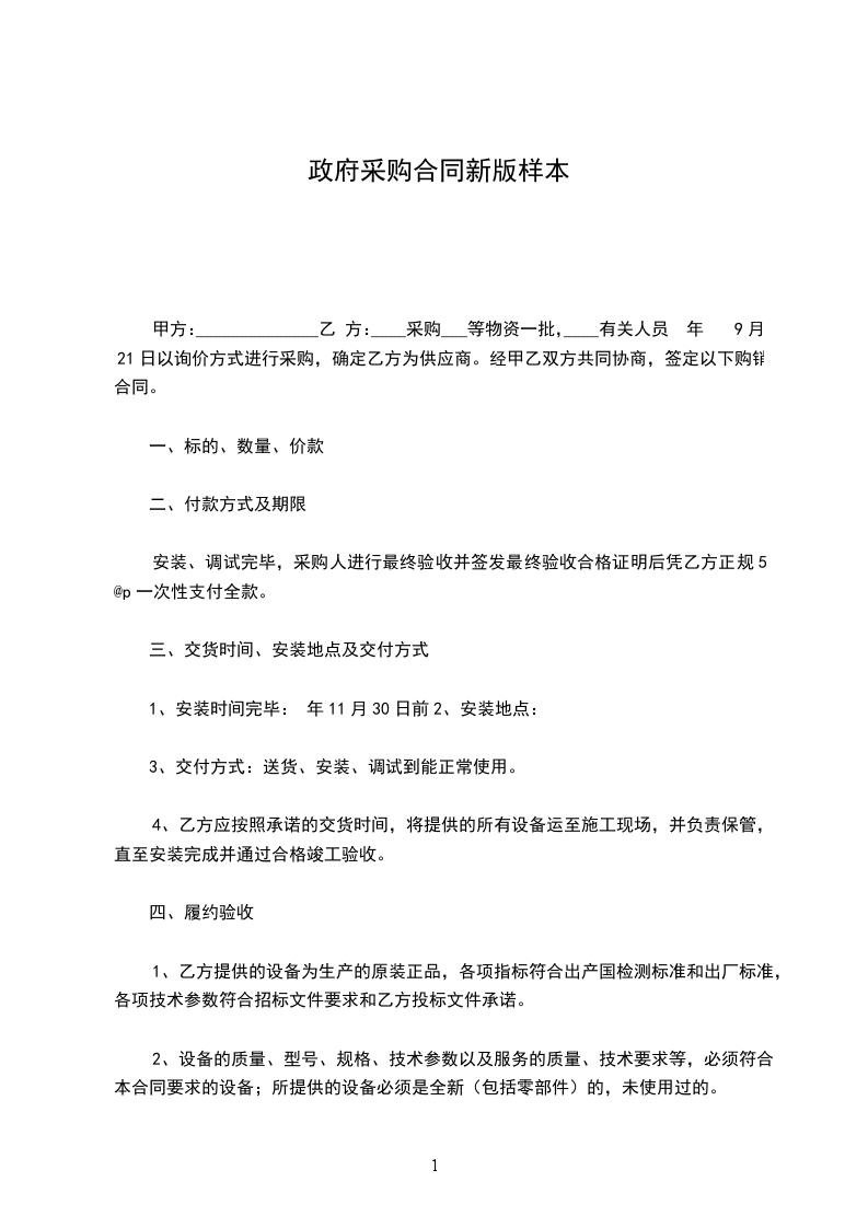 1.甲方收到乙方设备后,乙方应在_________政府采购管理办公室、_________监察审计部门、_________政府采购中心的共同监督下及时验收,验收时可对不符合合同要求及评标样本的设备或产品拒绝接收;