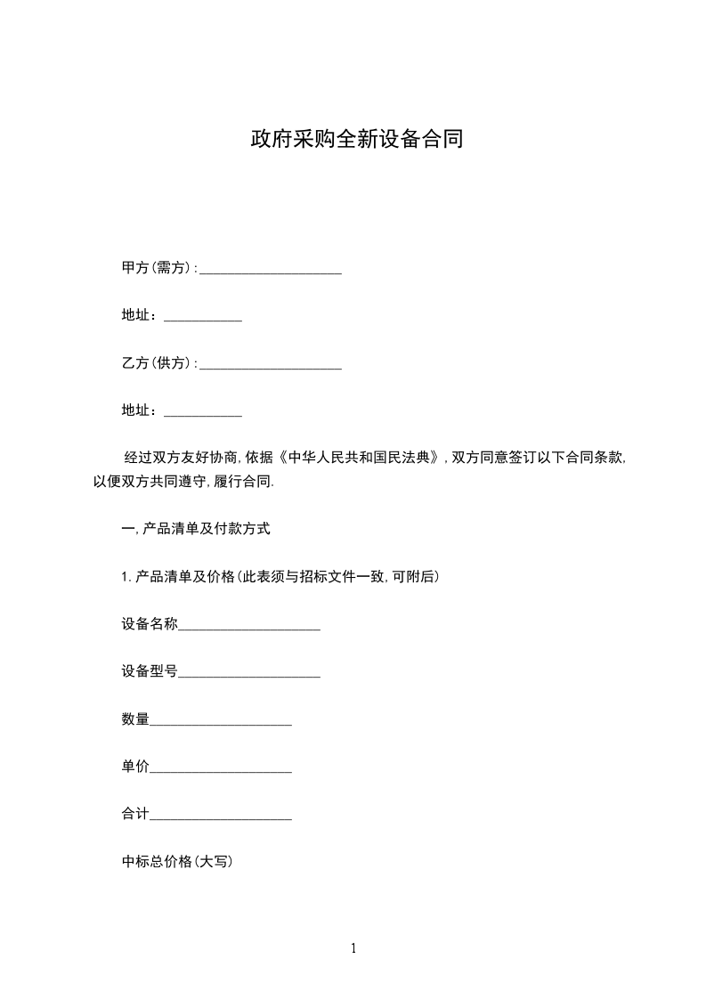 设备名称 __________________设备型号 _________数量 _________单价_____________(元),合计_________(元),中标总价格(大写):__________________