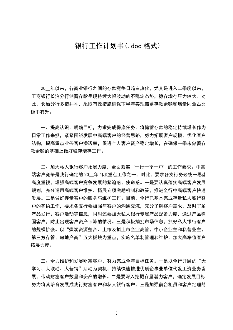 二、加大私人银行客户拓展力度,全面落实“一行一季一户”的工作要求。中高端客户竞争是我行确定的20__年四项重点工作之一,对此,要求各支行务必统一思想,高度重视,增强高端客户竞争发展的紧迫感、使命感。一是要认真落实高端客户发展规划,充分运用高端客户维护、拓展专项激励机制和政策,推进全行中高端客户快速发展。二是做好存量客户的服务与维护工作。目前,全行已基本完成存量私人银行客户的签约工作,要求各支行要加强与客户的沟通交流,充分了解客户需求,及时了解产品发行、客户活动等信息,同时还要加大私人银行专属产品配备力度,通过产品稳固客户,防止出现客户资产下降的情况。三是积极捕捉市场信息,抓好私人银行客户的规模扩张。以“煤炭资源整合、上市及拟上市企业高管、中小企业主和私营业主、第三方存管、房地产商”五大板块为重点,实施名单制管理和维护,加大高净值客户拓展力度。