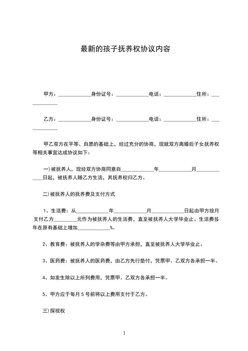 四)如遇其它未尽事宜或应时事宜,按照一切有利于孩子的原则,互谅互让,协商解决。