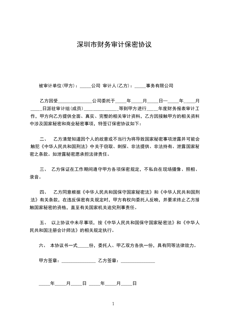 五、 以上协议中未尽事项,按《中华人民共和国保守国家秘密法》和《中华人民共和国注册会计师法》的相关规定执行。