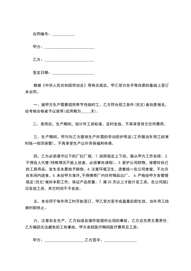 根据《中华人民共和国劳动法》,甲乙双方经平等协商,自愿签订本合同,共同遵守本合同所列条款。