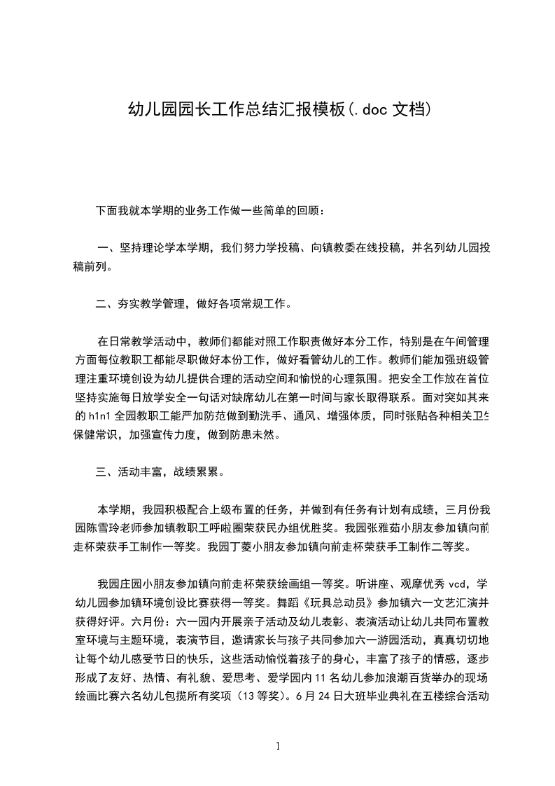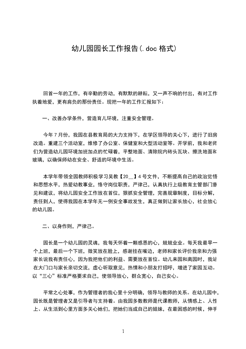 本学年带领全园教师积极学习吴教【20__】4号文件,不断提高自己的政治觉悟和思想水平,热爱幼教事业,恪守岗位职责,严律己,认真执行上级教育主管部门意见和建议,将幼儿园安全工作放在首位,狠抓安全管理,完善规章制度,目标分解,责任到人,使得我园在本学年无一例安全事故发生,真正做到让家长放心,社会放心的幼儿园。