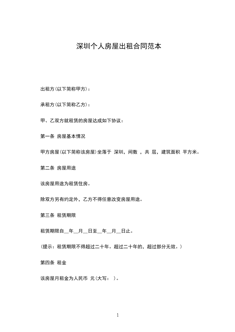 (提示:租赁期限不得超过二十年。超过二十年的,超过部分无效。)