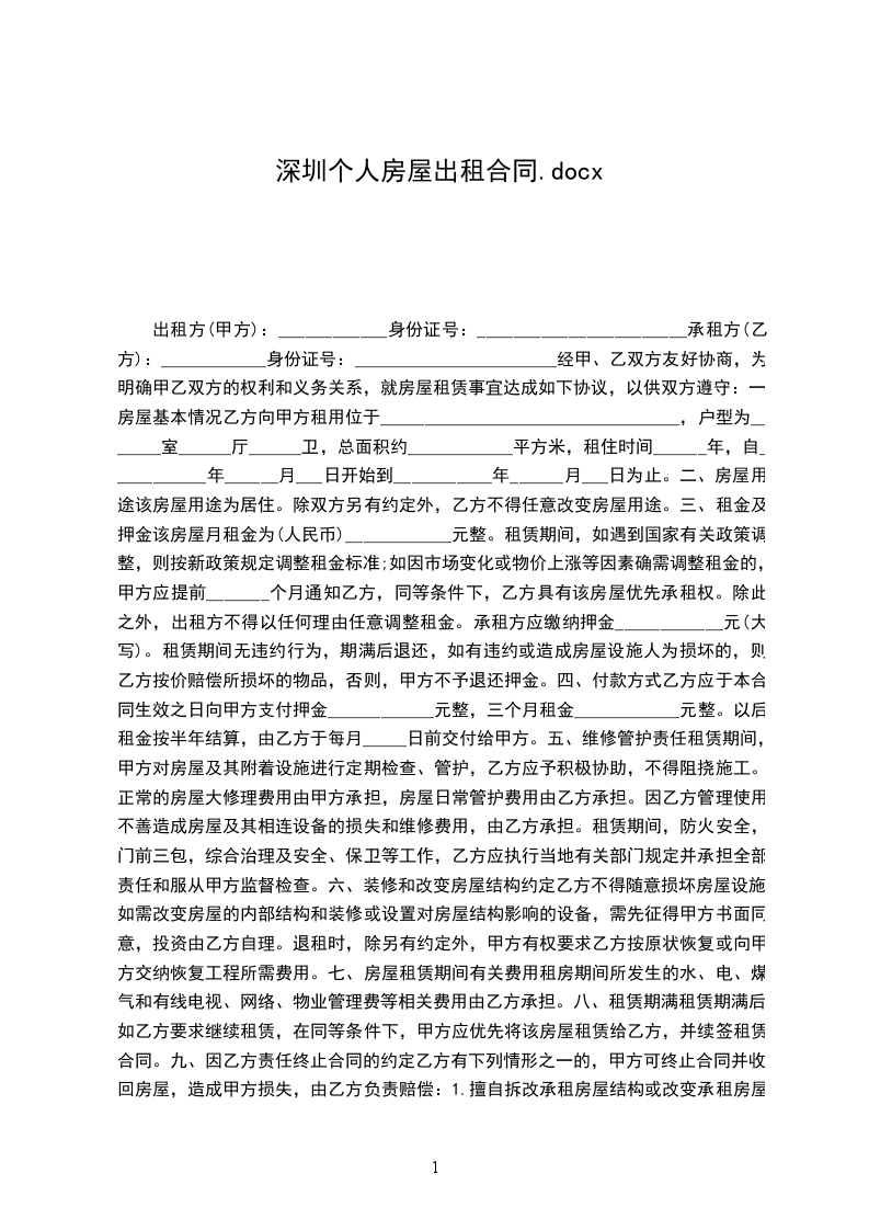 甲方房屋(以下简称该房屋)坐落于 深圳,间数 ,共 层,建筑面积 平方米。