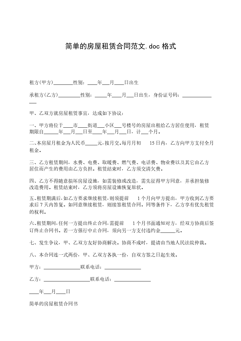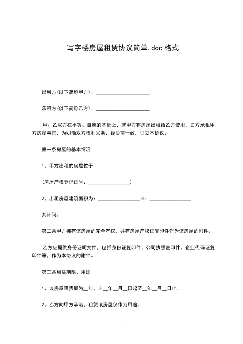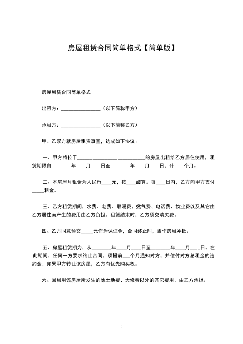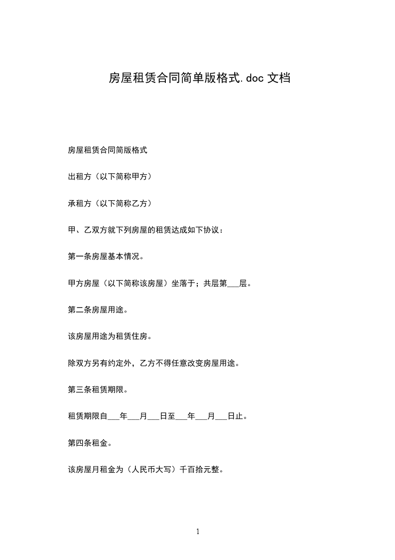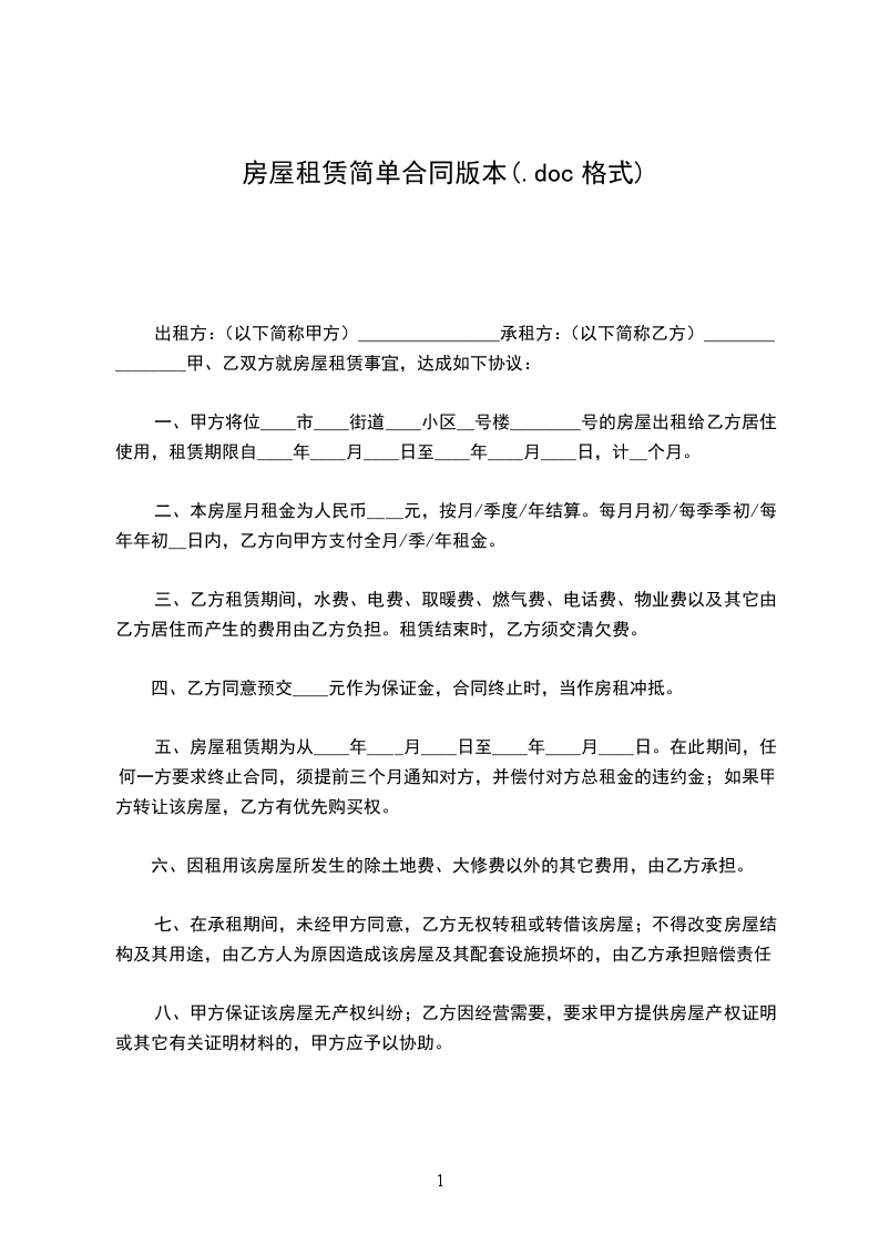 一、甲方将位____市____街道____小区__号楼________号的房屋出租给乙方居住使用,租赁期限自____年____月____日至____年____月____日,计__个月。