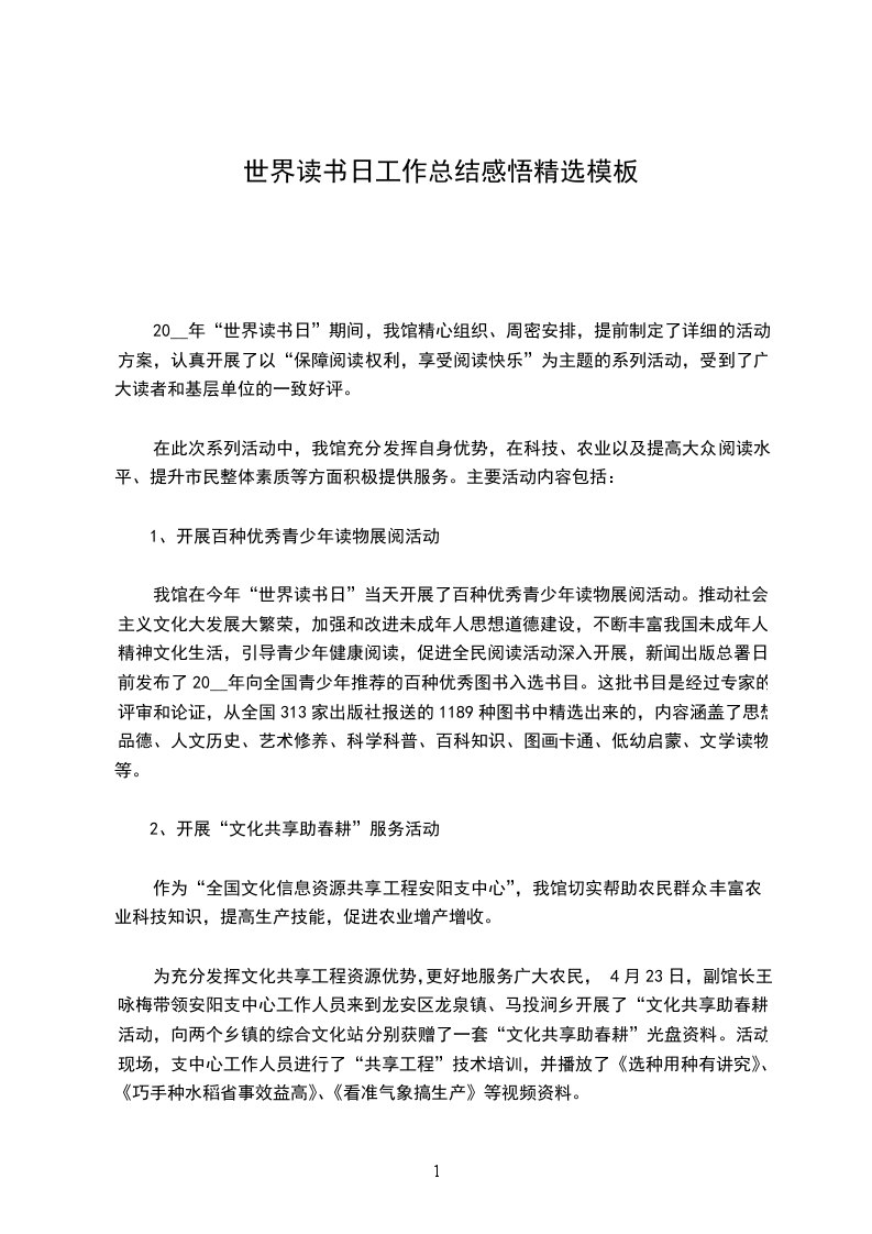 20__年“世界读书日”期间,我馆精心组织、周密安排,提前制定了详细的活动方案,认真开展了以“保障阅读权利,享受阅读快乐”为主题的系列活动,受到了广大读者和基层单位的一致好评。