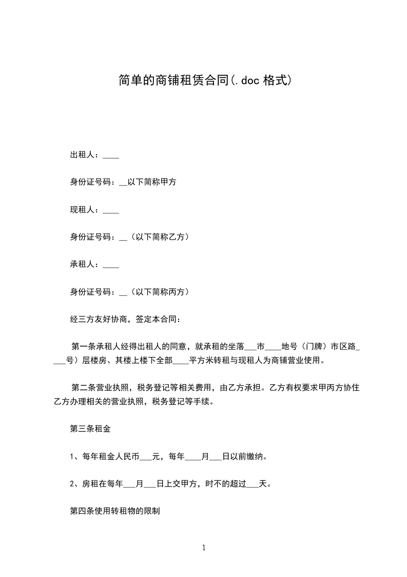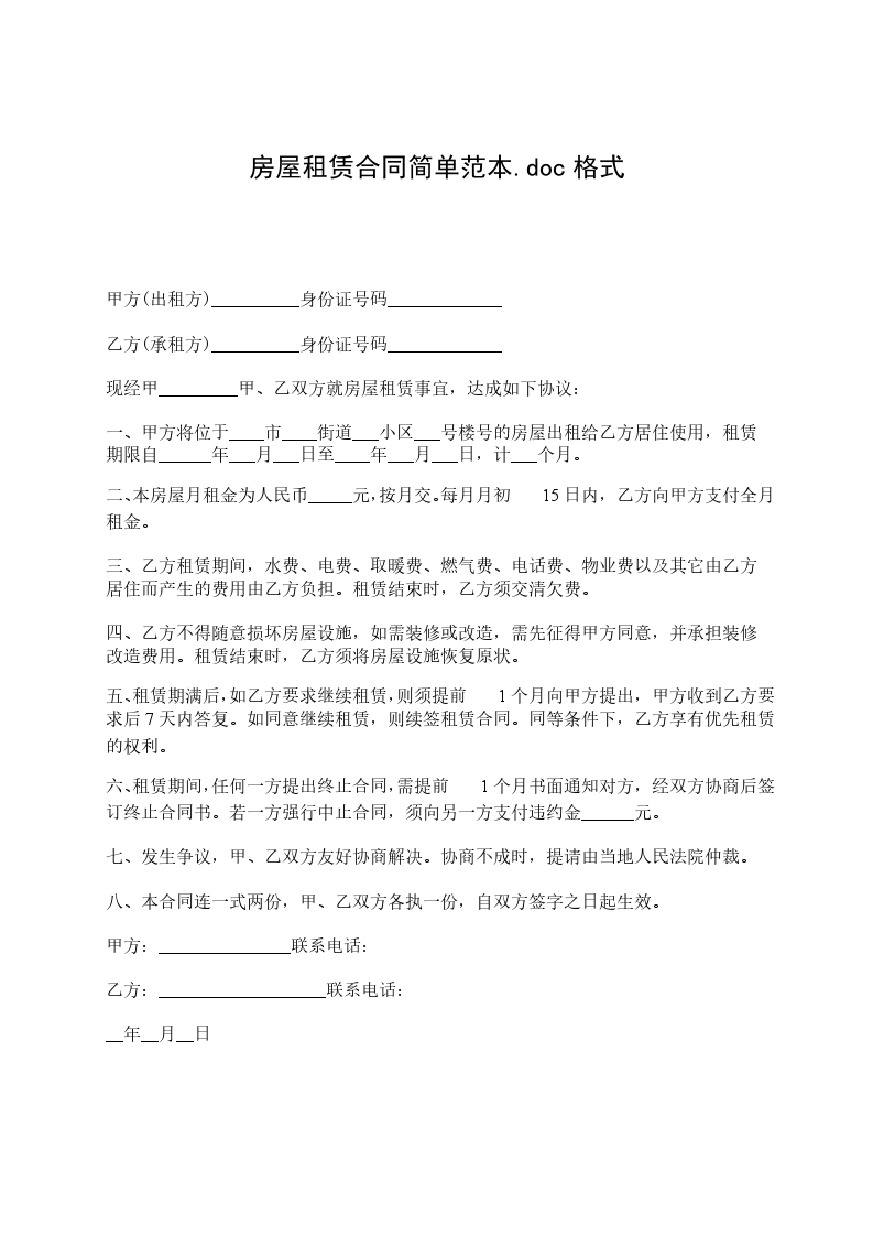 承租方(以下简称乙方):证件号码: