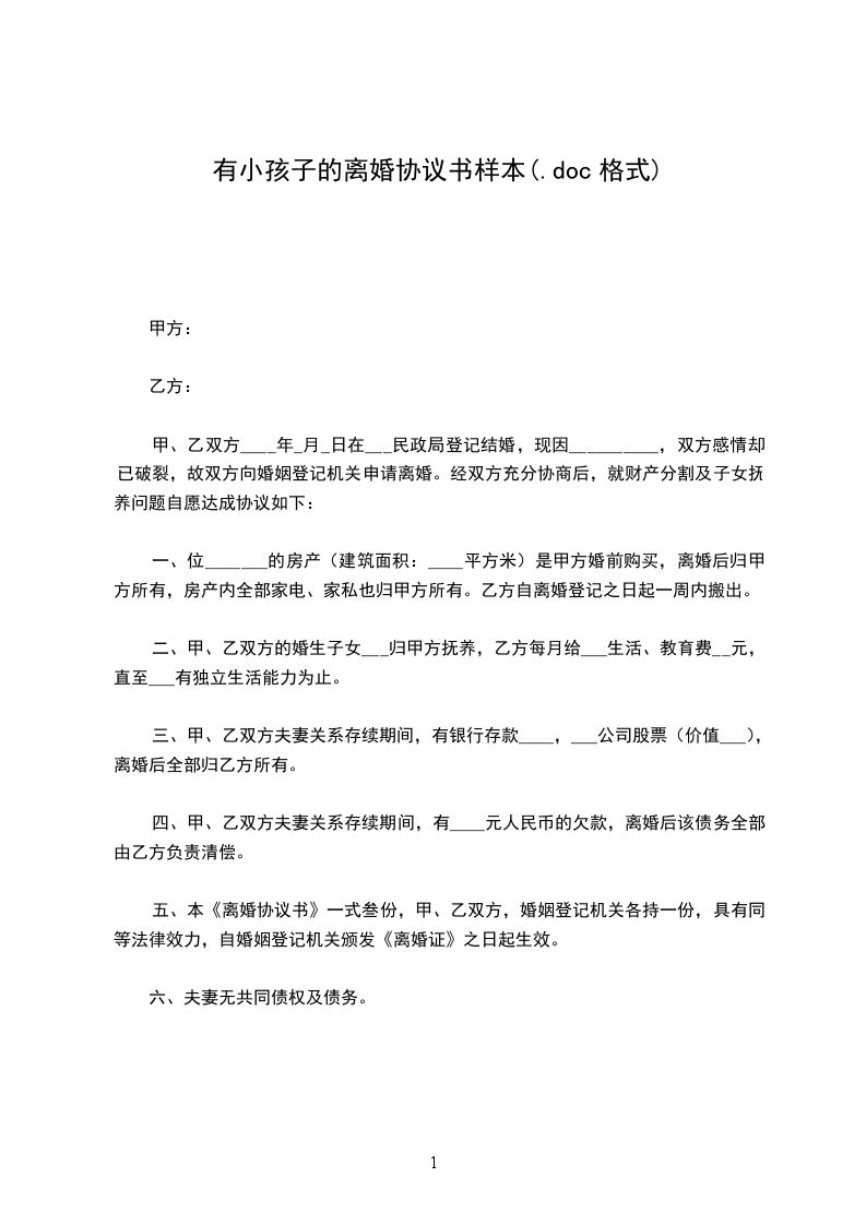 五、本《离婚协议书》一式叁份,甲、乙双方,婚姻登记机关各持一份,具有同等法律效力,自婚姻登记机关颁发《离婚证》之日起生效。