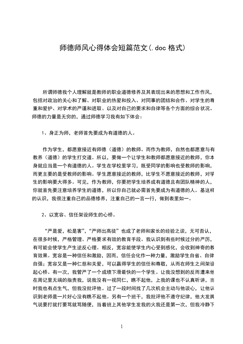 所谓师德我个人理解就是教师的职业道德修养及其表现出来的思想和工作作风,包括对政治的关心和了解、对职业的热爱和投入、对同事的团结和合作、对学生的尊重和爱护、对学术的严谨和进取、以及对自己的要求和自律等各个方面的综合状况。师德的力量是无穷的,通过师德学习我有如下体会: