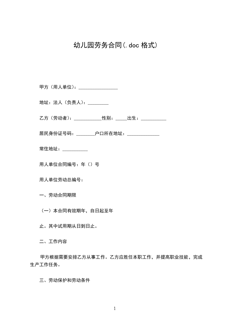 用人单位合同编号:年()号