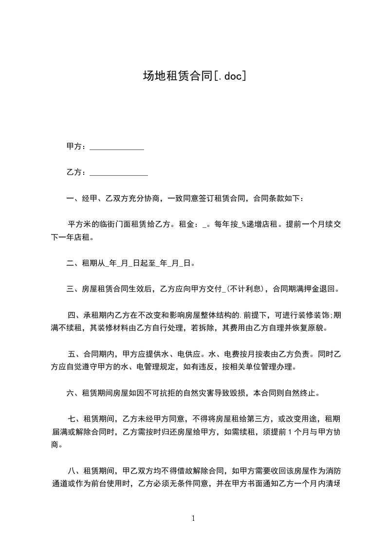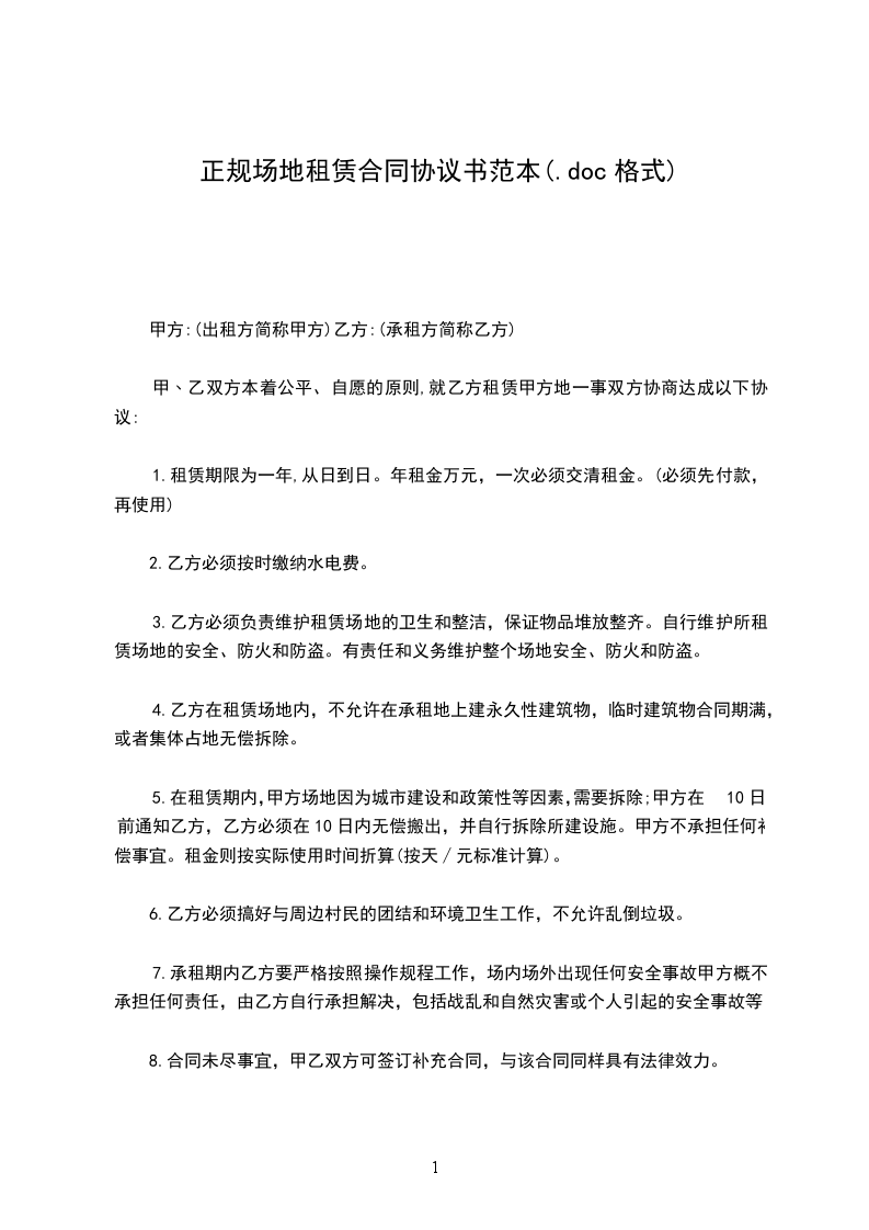 7.承租期内乙方要严格按照操作规程工作,场内场外出现任何安全事故甲方概不承担任何责任,由乙方自行承担解决,包括战乱和自然灾害或个人引起的安全事故等。