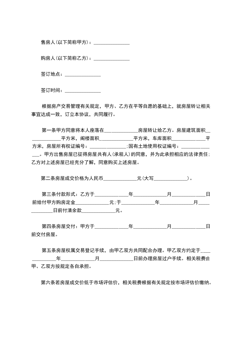 双方商定该房屋转让价格为_______________元整。