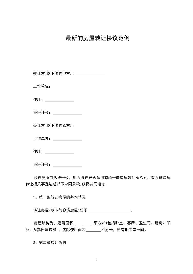 1、第一条转让房屋的基本情况