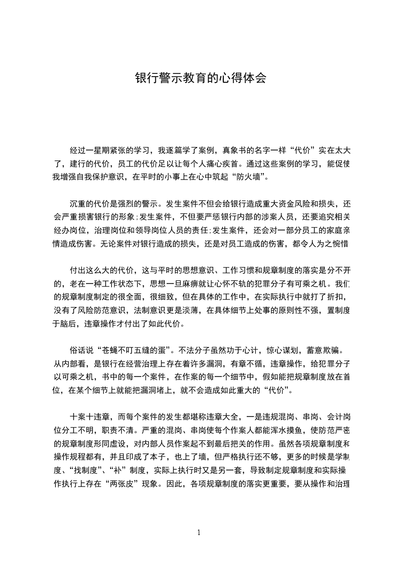 沉重的代价是强烈的警示。发生案件不但会给银行造成重大资金风险和损失,还会严重损害银行的形象;发生案件,不但要严惩银行内部的涉案人员,还要追究相关经办岗位,治理岗位和领导岗位人员的责任;发生案件,还会对一部分员工的家庭亲情造成伤害。无论案件对银行造成的损失,还是对员工造成的伤害,都令人为之惋惜。