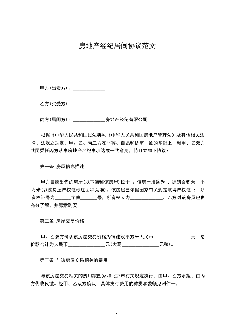 丙方(居间方):______________房地产经纪有限公司