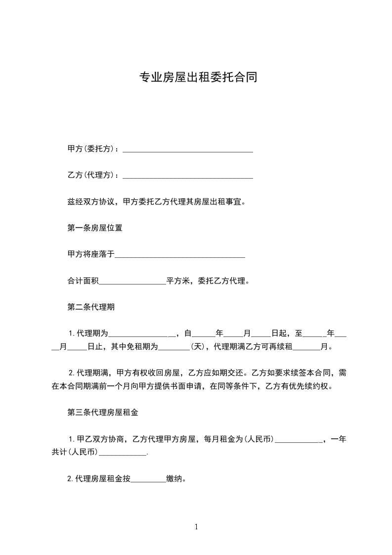 兹经双方协议,甲方委托乙方代理其房屋出租事宜。