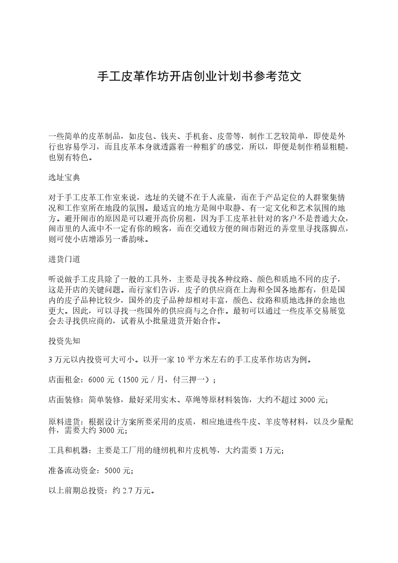 3万元以内投资可大可小。以开一家10平方米左右的手工皮革作坊店为例。