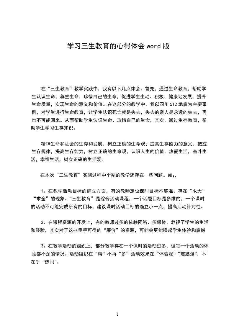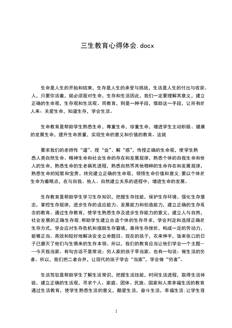 在“三生教育”教学实践中,我有以下几点体会。首先,通过生命教育,帮助学生认识生命,尊重生命,珍惜自己的生命,促进学生生动、积极、健康地发展,提升生命质量,实现生命的意义和价值。在这部分的教学中,我以四川512地震为主要事例,对学生进行生命教育,让学生认识死亡就是失去,失去的亲人是永远的失去,再也不可能回来。从而帮助学生认识生命、珍惜自己的生命,其次,通过生存教育,帮助学生学习生存知识。