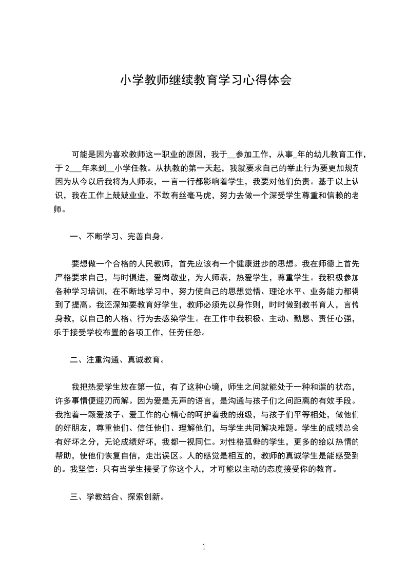 可能是因为喜欢教师这一职业的原因,我于__参加工作,从事_年的幼儿教育工作,于2___年来到__小学任教。从执教的第一天起,我就要求自己的举止行为要更加规范,因为从今以后我将为人师表,一言一行都影响着学生,我要对他们负责。基于以上认识,我在工作上兢兢业业,不敢有丝毫马虎,努力去做一个深受学生尊重和信赖的老师。