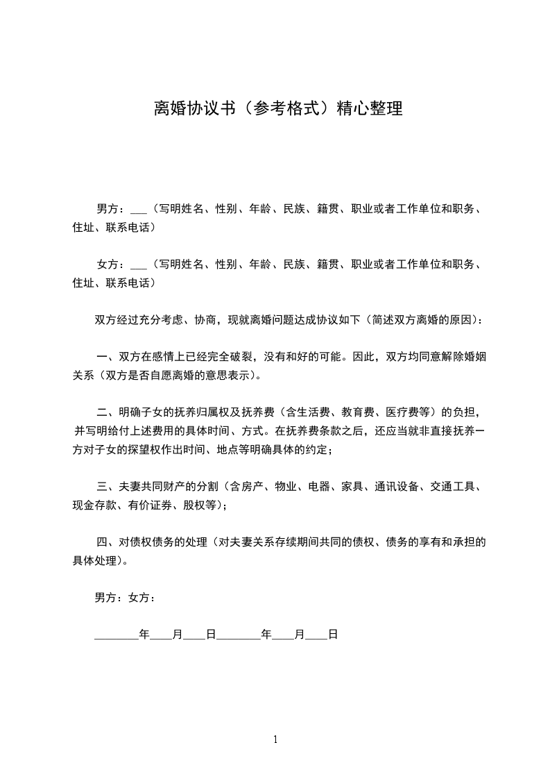 双方经过充分考虑、协商,现就离婚问题达成协议如下(简述双方离婚的原因):
