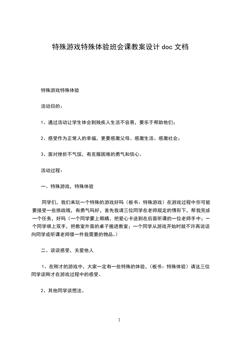 1、在刚才的游戏中,大家一定有一些特殊的体验,(板书:特殊体验)请这三位同学谈刚才在游戏过程中的感受。